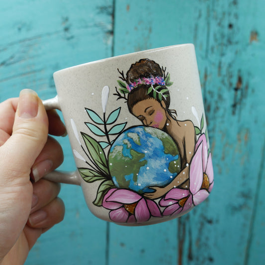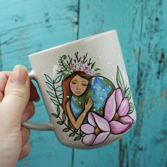 Tasse colibri à gorge rubis avec fleur peinte à la main