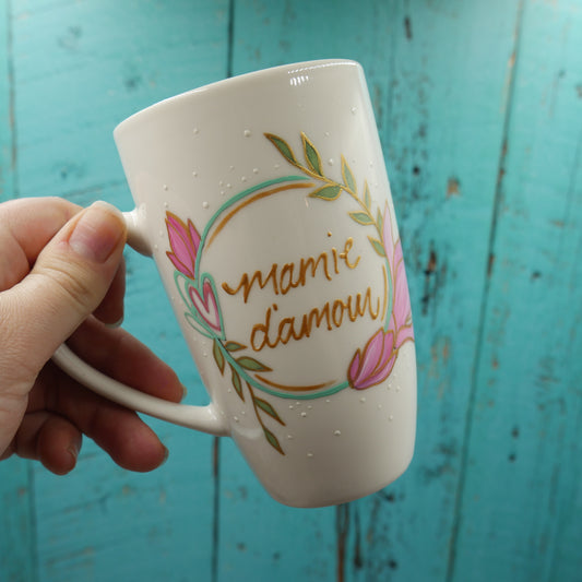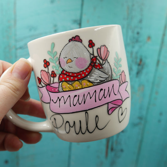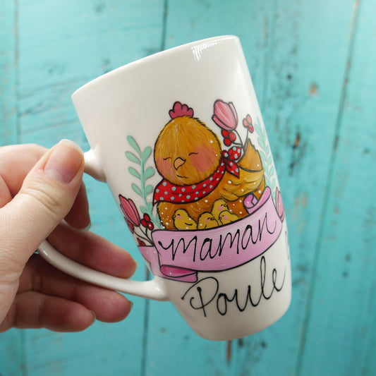 Grande tasse maman poule avec oeufs de Pâques peint à la main
