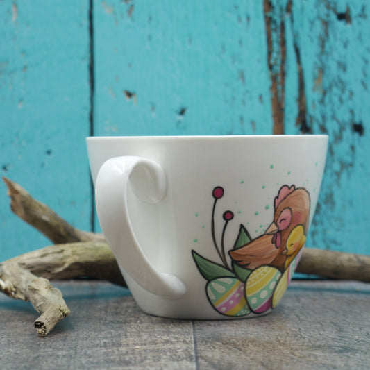 Grande tasse maman poule avec oeufs de Pâques peint à la main
