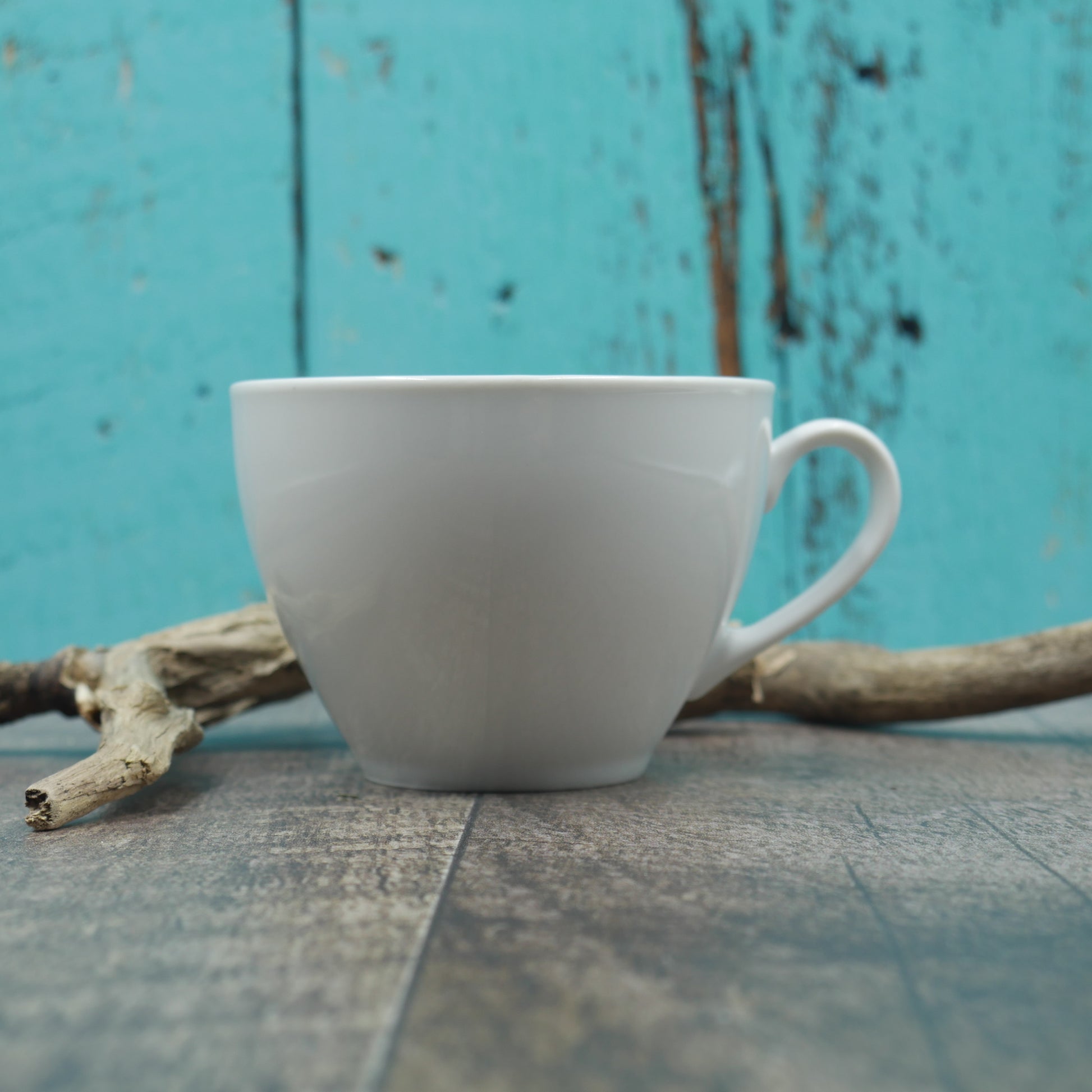 Petite tasse en porcelaine de couleur blanche peinte à la main.